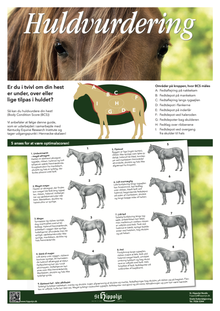 Er den tilpas i huldet? Og fodrer du derefter? Har man en for tyk hest med en huldkarakter på fx. 7, og fodrer den efter dens pt. vægt på fx 600 kg, så forbliver hesten fed. Foder altid efter idealvægt, og ikke pt vægt, når du ønsker forandring i huldkarakteren.