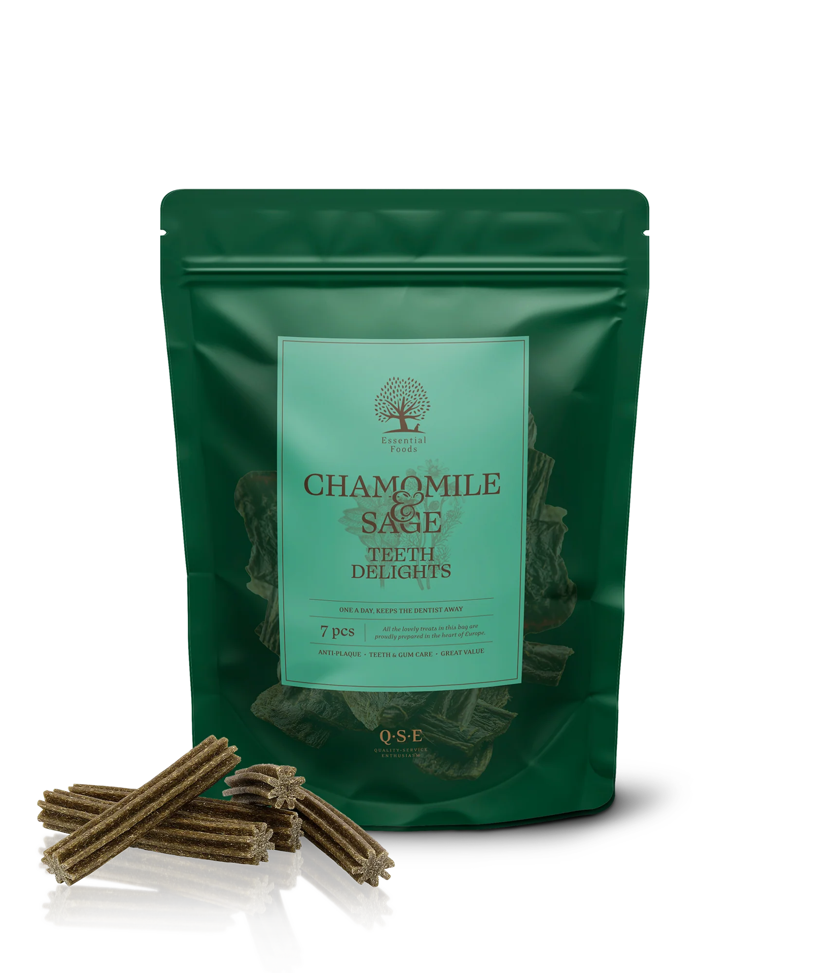 Denne stjerneformede, semi-bløde godbid er ikke bare uimodståelig – den bidrager nemlig også til god mundhygiejne. Udover kamille og salvie indeholder tandrenseren SHMP, der hjælper med at forebygge tandsten samt forfriskende mynte til god ånde – altså en godbid med ekstra bonus.