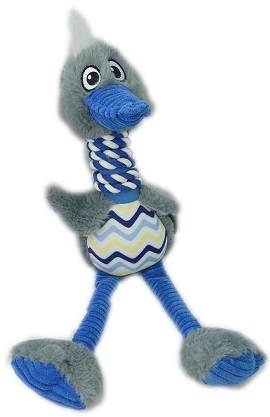 Sjov plys fugl med rebben og som giver pivelyde, når hunden bider i den.