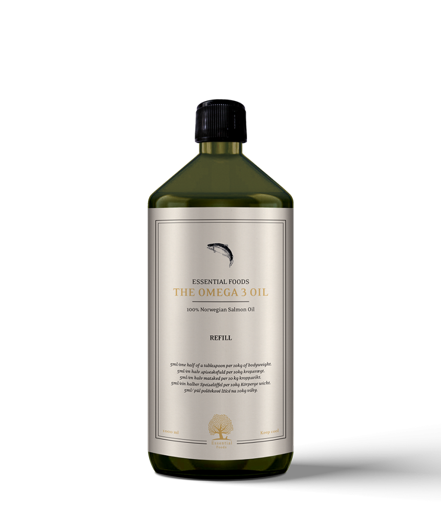 Selvom vi gerne vil sælge vores varer, ligger vi først & fremmest vægt på rådgivning. OMEGA 3 indholdet i vores egne måltider vil for det fleste hunde være tilstrækkeligt. Et ekstra omega 3 tilskud ved brug af lakseolie kan være særdeles gavnligt for en række hundes velvære. Vi syntes selv at vores lakseolie flaske er temmelig genial (nem at arbejde med), men vær opmærksom på der ikke følger pumpe med og ej kan tilkøbes.