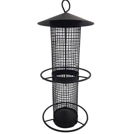 Til nødder og solsikkekerner, med sort metalnet og 2 foderringe