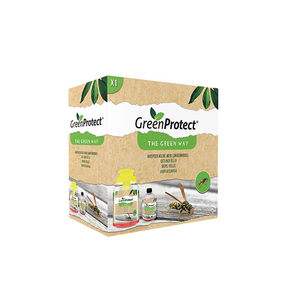Green Protect hvepsefælde er en effektiv og ugiftig fælde med tilhørende lokkemiddel.. Ved hjælp af lkkemidlet ledes hvepsene væk fra haven helt uden brug af gift. Tiltrækker kun hvepse, ikke bier og andre nytteinsekter.