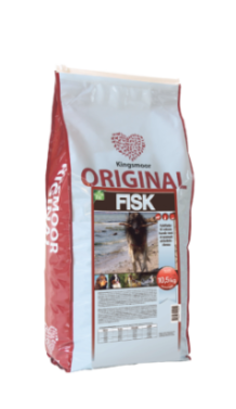 Fiskemel (18% fisk), majs (16,5%), majsmel (16,5%), hestebønner (16%), animalsk fedtstof (svinefedt) (9%), ærter (ærtemel) (8%), roesnitter (tørrede fibre) (7%), ris (4%), fiskeolie (1%), natriumklorid (1%), calciumcarbonat (1%), vegetabilsk olie og fedtstof (rapsolie raffineret) (0,5%), ølgær (renset) (0,5%), Kingsmoor urter (0,125%) (tang, hyben, æble, burresnerre, blåbær, rabarber, birkebark, lucerneurt, brændenælde, mælkebøtte med rod, kamille, hvidtjørn, enebær, anis), cikorieinulin (0,1%), lecithin (0,1%), gulerødder (tørrede) (0,1%)