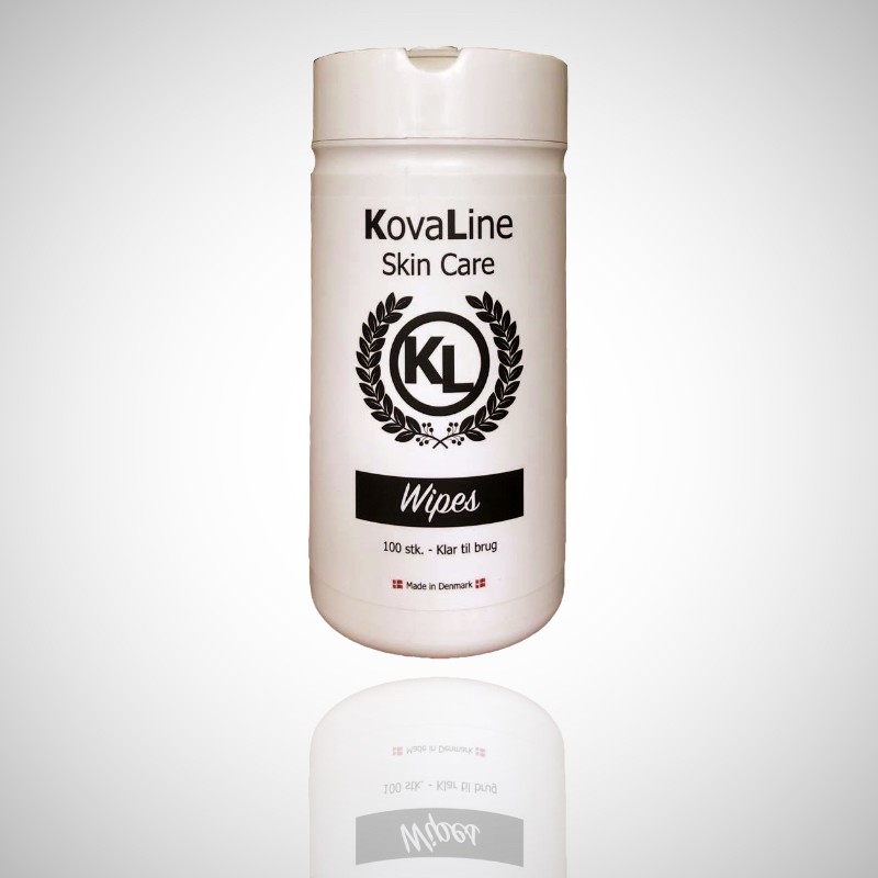 KovaLine Wipes indeholder vores KovaLine Plejeblanding klar til brug. Renser, peeler og plejer i samme proces. Enkel at bruge og gør det lettere at vaske de inficerede områder.