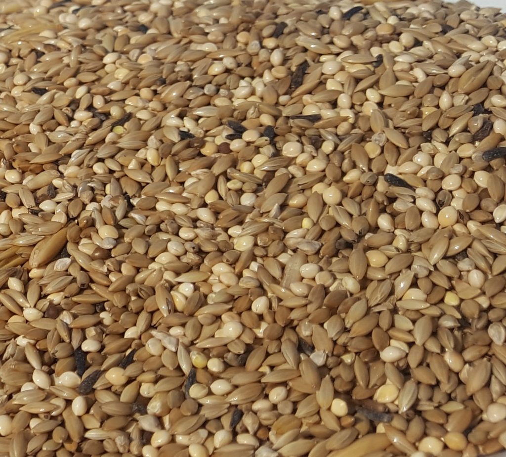 Kanariefrø, japanhirse, hvid hirse, afskallet havre, rajtor havre, nigerhirse. God til:- Kyllinger