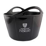 Sort flexispand med Nordic Horse sølv-logo. Kan rumme 17 liter og er derfor perfekt til bl.a. fodring, opbevaring, stævner mm.