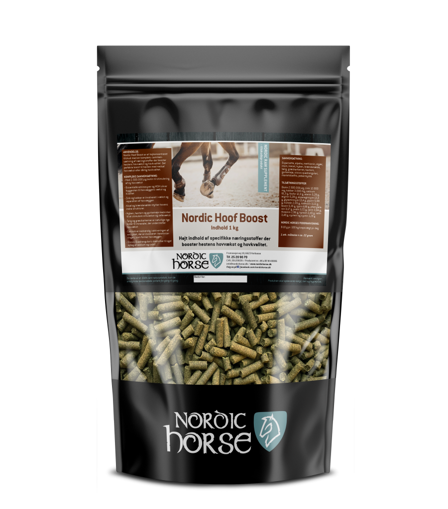 Nordic Hoof Boost er et højkoncentreret tilskud med en kompleks sammensætning af næringsstoffer der booster hestens hovvækst og hovkvalitet. Det perfekte boost til hesten med nedsat hovvækst eller dårlig hovkvalitet.