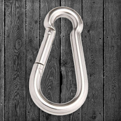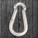 Elektrogalvaniseret karabinhage med åbent øje. God til ophængning/montering af hønet.