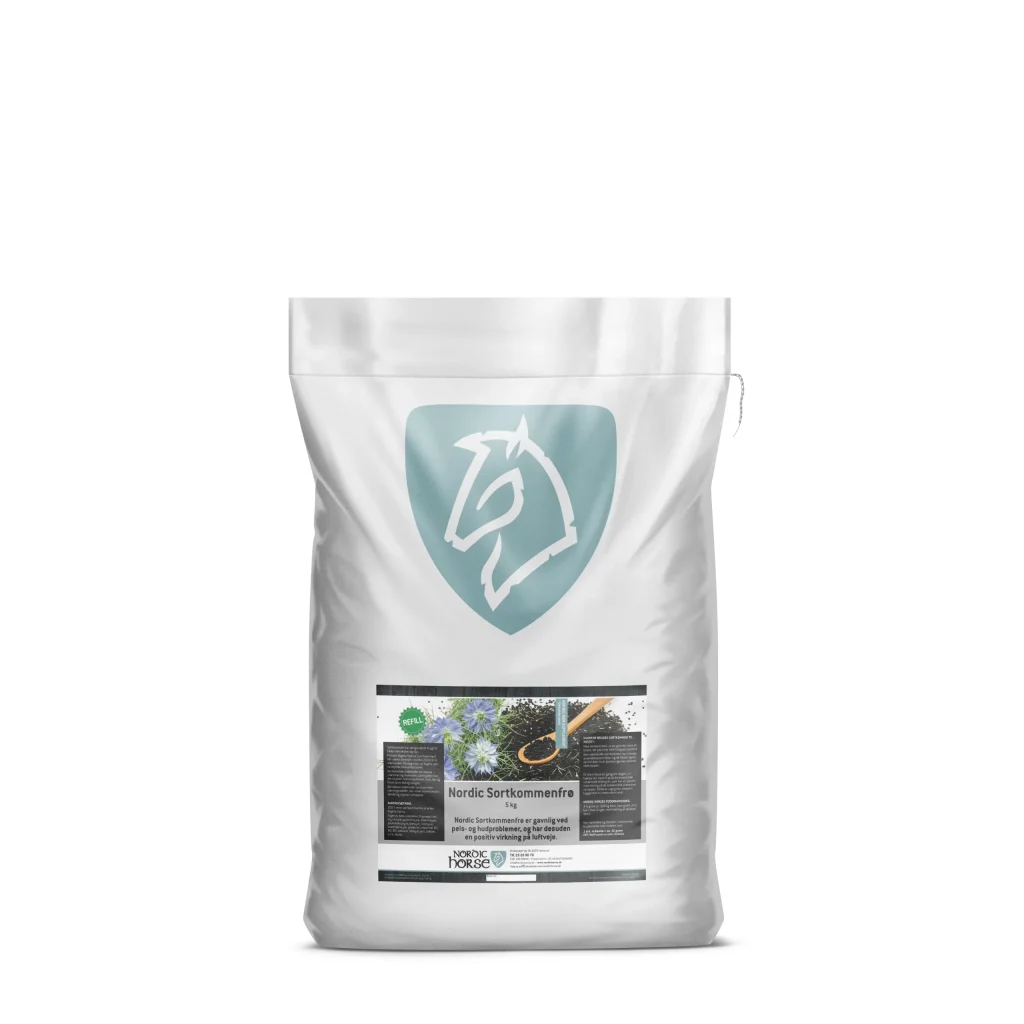 Sortkommen indeholder en masse vitaminer og mineraler, samt gode olier, som styrker immunsystemet, hud, hår og hove samt led og knogler.
