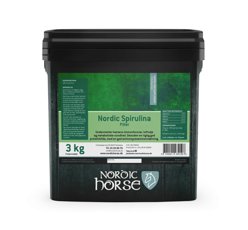 - Spirulina er en blågrøn alge, der er veldokumenteret som tilskud til heste.