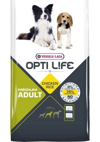 Opti Life Adult Medium Kylling og ris – 12,5 kg. (Bestillingsvare, leveringstid 1 – 2 uger)