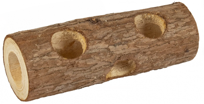 Rør i træ med huller. Velegnet til at aktivere din kanin